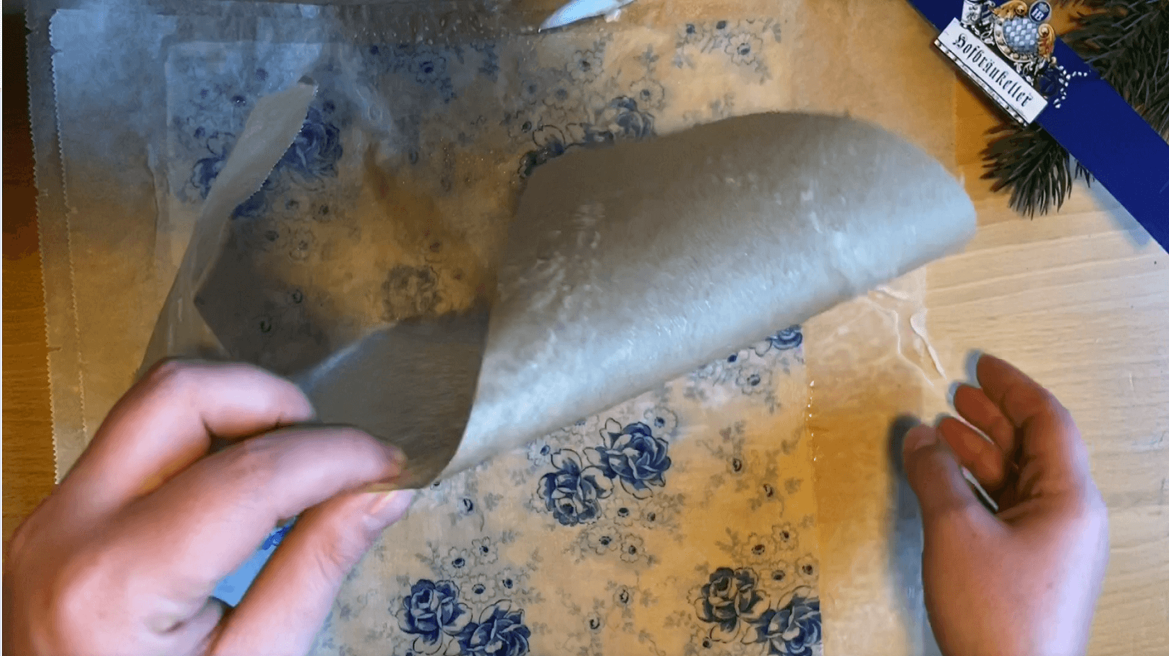 5. Anschließend den mit Wachs eingelassenen Stoff abkühlen und aushärten lassen.